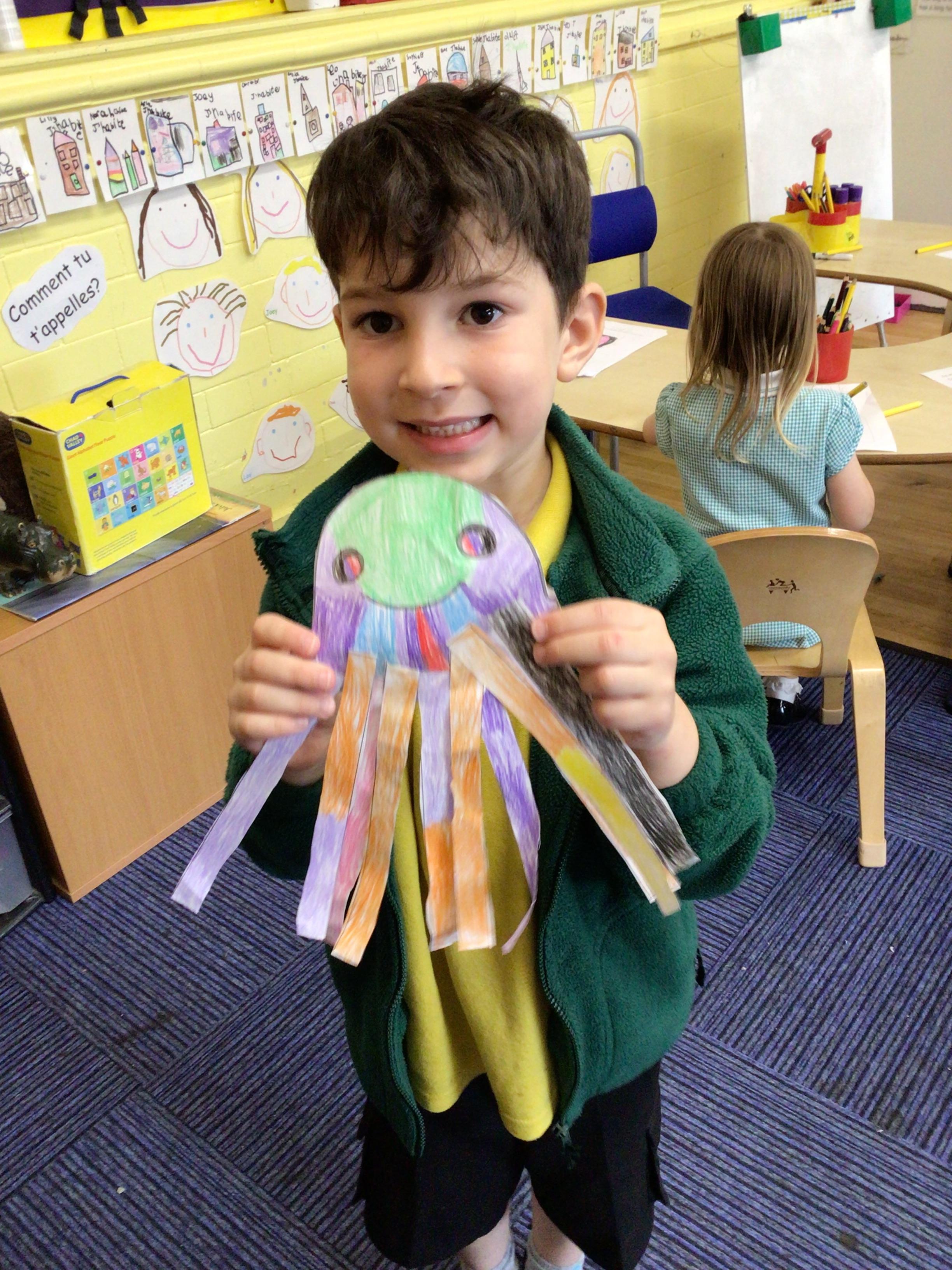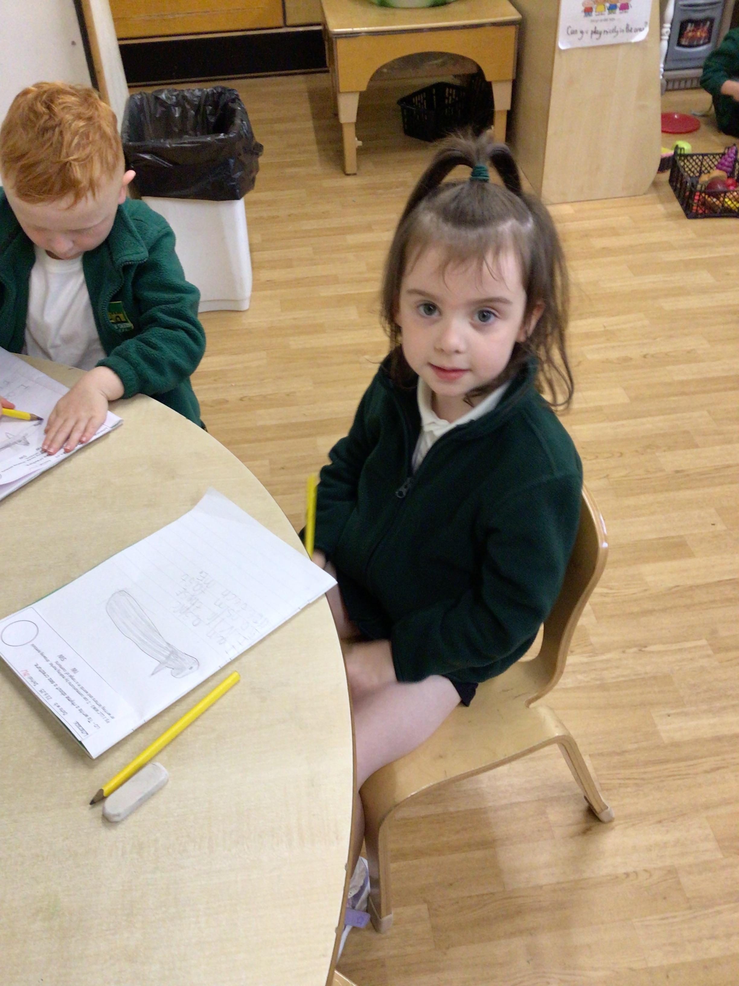 This week is a very exciting one as on Friday we will be spending the morning with our new teacher in our new classroom. Mrs. Marten has told me she is really looking forward to meeting the class. In literacy we are writing rhymes about sea creatures and practising spelling key words. We will also be writing to Mrs. Marten telling her all about us. In maths we are looking at halves and trying to match up 2 halves to make 1 picture and we will be using playdough to make 2D shapes and cut them in half. In science and technology we will continue learning facts about more sea creatures. Our big book is "Whale Watching" and our Welsh big book is "Y Stryd." In p.e. we are going to do some races on the field.