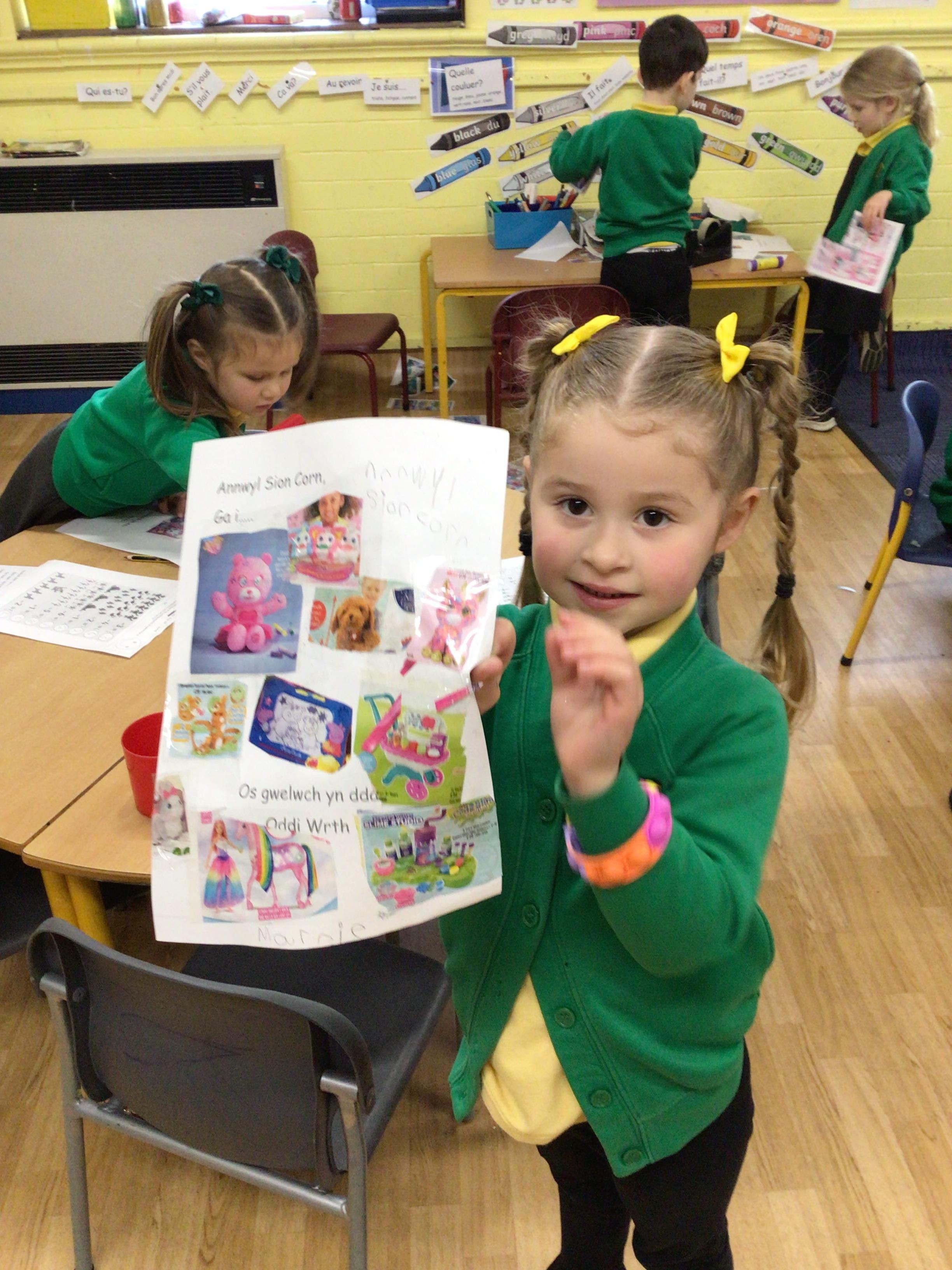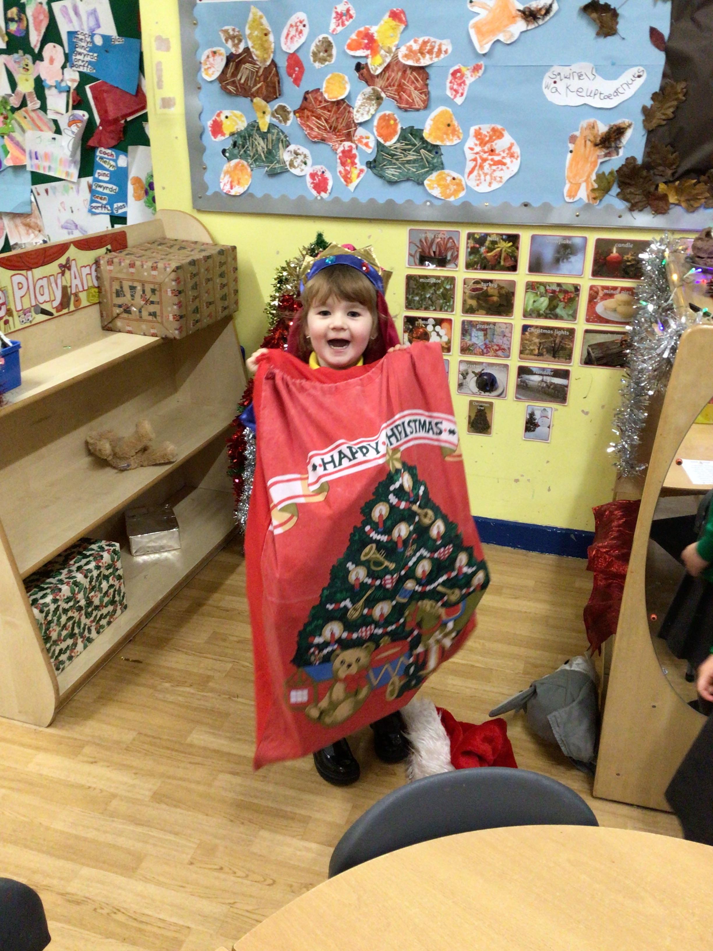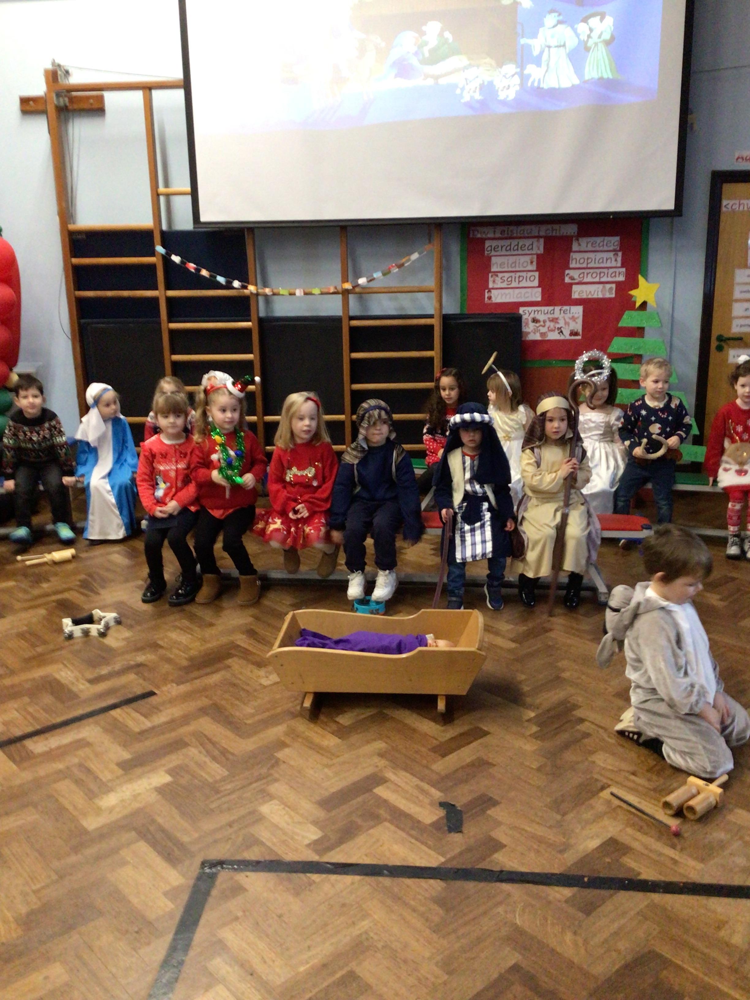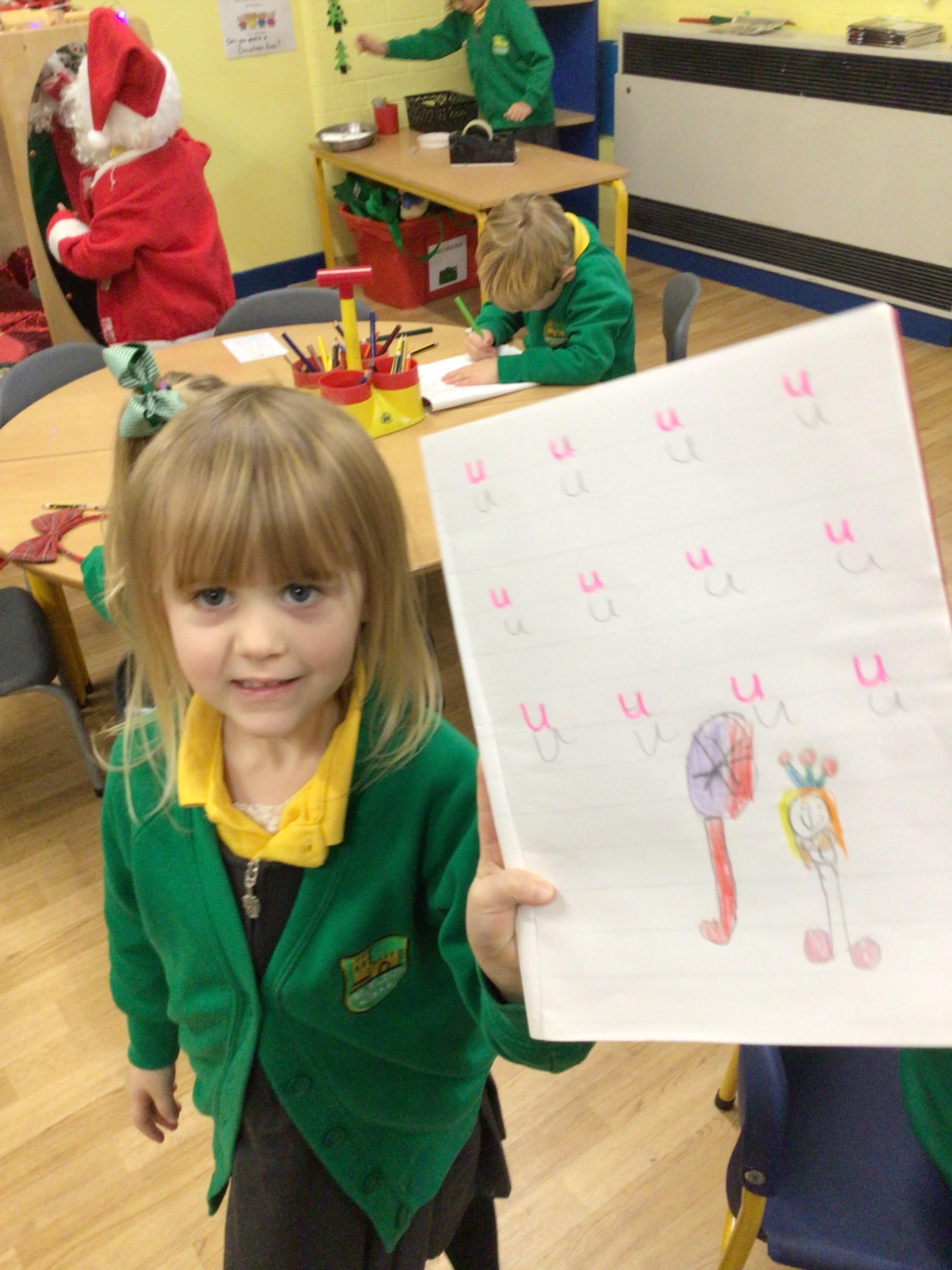 This week we will be busy making Christmas cards, calendars and tea light holders. We are really excited because on Tuesday we will be watching M and M Productions' performance of Snow White. On Thursday we will be performing our nativity show to parents. We are really looking forward to seeing you there. As well as all that we will be doing some maths work based on our sales at the Christmas Fair, doing some Christmas subtraction sums and learning more about numbers to 100. We will be writing, in Welsh, to Sion Corn (Santa) and our letter of the week is u.